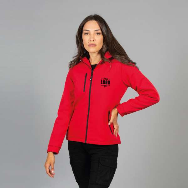Giubbino donna in soft shella due strati idrorepellente, imbottito con trattamento idrorepellente- 95% poliestere - 5% elastan- Traspirabilità 14000 g/M2/24h- Fodera in poliestere con cuciture verticali- Imbottitura in poliestere- Cappuccio imbottito con coulisse- Tessuto appendiabito interno collo- Cerniere nastrate YKK- Una tasca sul petto con zip- Due tasche esterne con zip- Una tasca interna portafoglio con velcro- Polsini regolabili con velcro- Coulisse al fondo