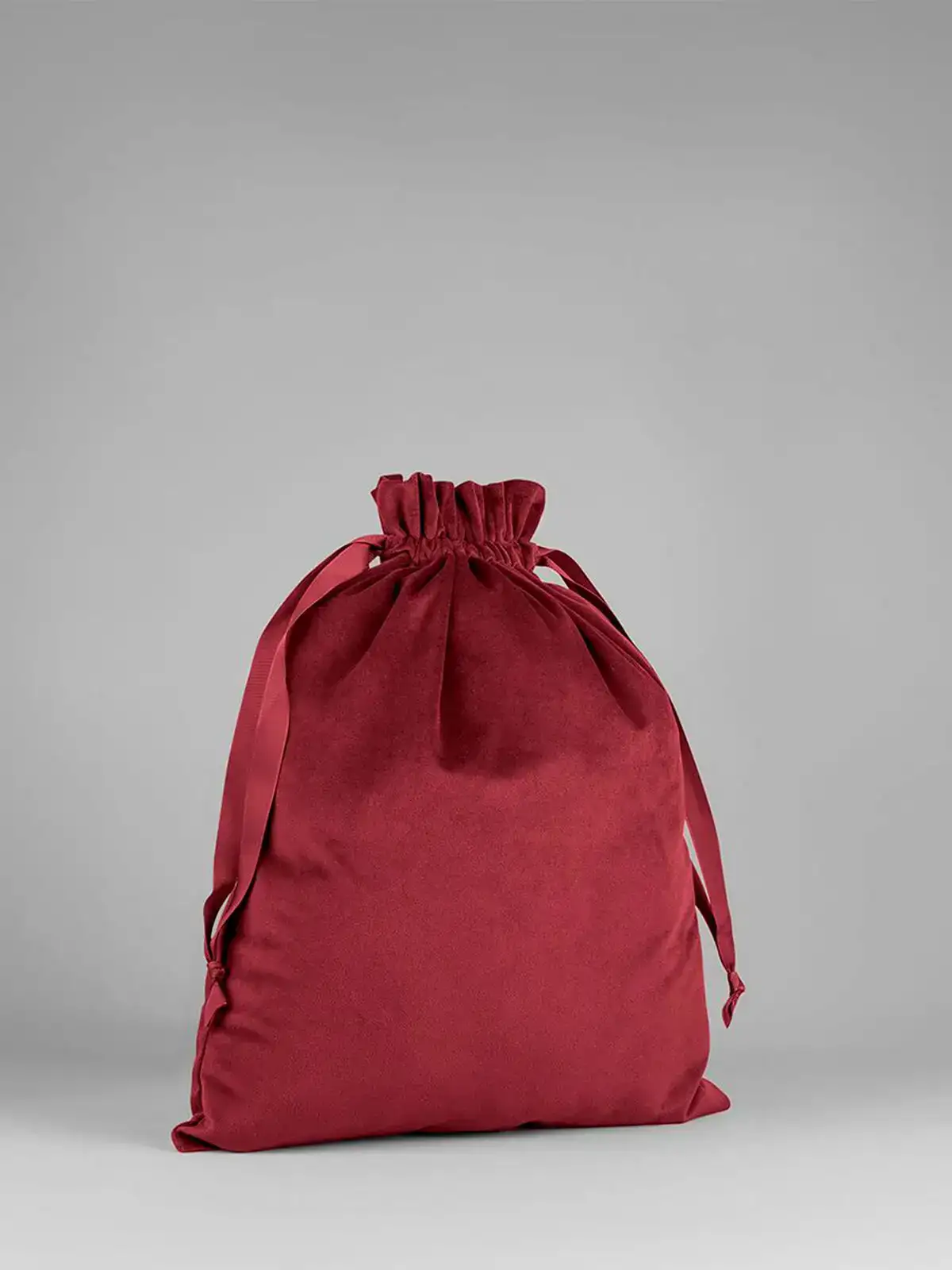 100% poliestere riciclato. Sacca in velluto, chiusura con coulisse, nastro in gros-grain, multiuso. Etichetta removibile. Dimensioni: S: 24x17cm, M: 44x36cm, L: 68x54cm.