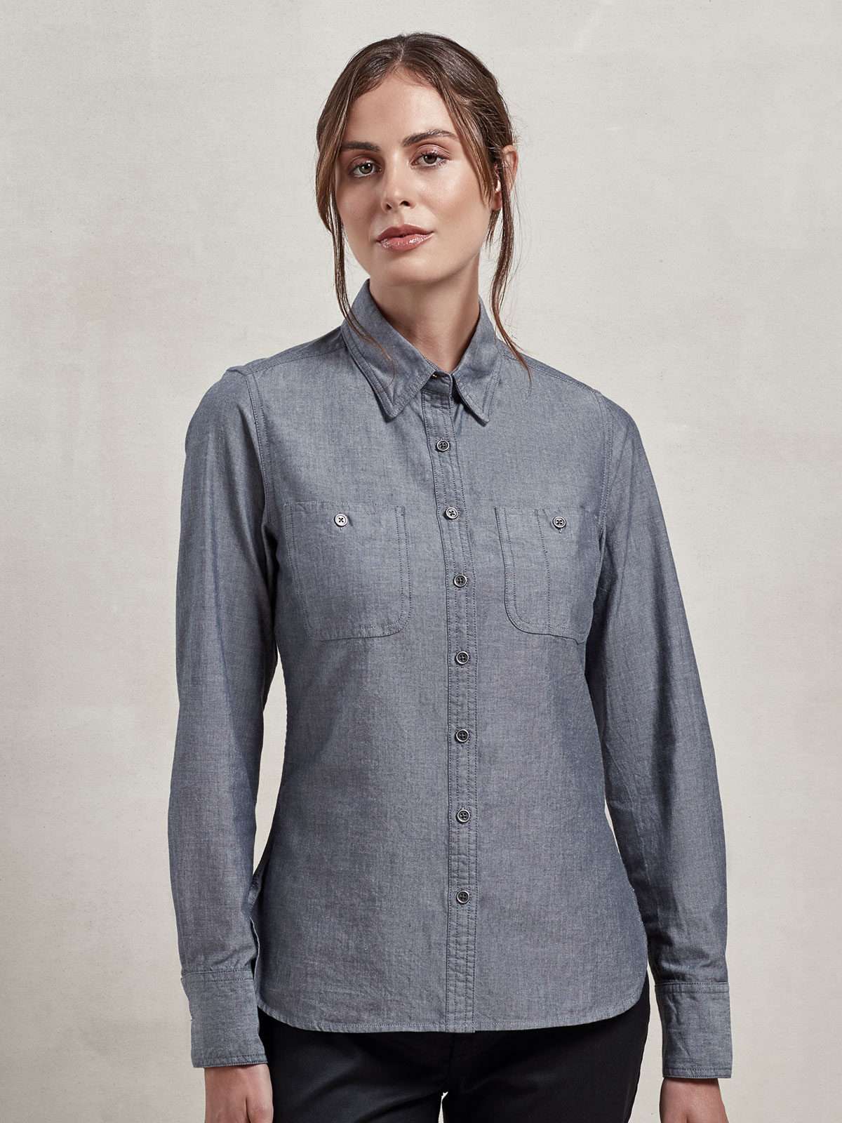 100% cotone organico. Camicia con pinces sul busto e sulla schiena, orlo arrotondato, polsino con due bottoni, pannello protettivo della manica con bottone e apposita linguetta per arrotolarla, due tasche al petto con taschino porta-penne a sinistra. Prodotto certificato Fairtrade.