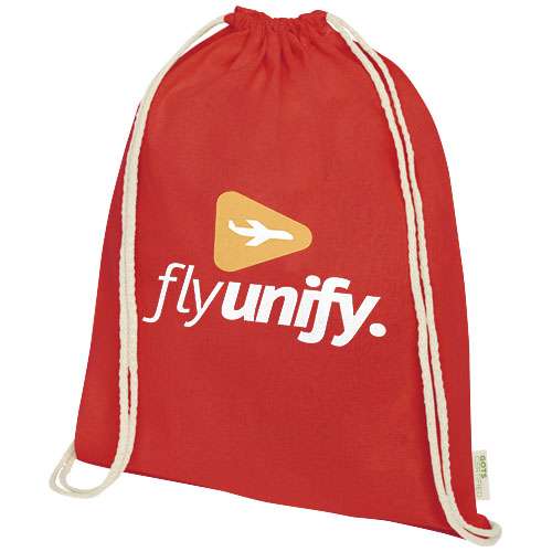Pratica e sostenibile, realizzata in 100% cotone organico certificato GOTS da 100 g/m², proveniente dall'India. La certificazione OEKO-TEX® garantisce l'assenza di sostanze nocive, rendendola sicura per l’uso quotidiano. Dotata di un ampio scomparto principale e di una chiusura con corde in cotone naturale. Perfetta per fiere, eventi promozionali o come alternativa sostenibile alla borsa classica.