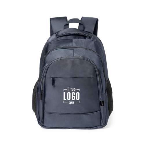 Zaino di alta qualità realizzato in RNYLON 420D. Scomparto principale con chiusura a zip in tinta e doppio tiretto. Include 3 tasche esterne con cerniera e 2 tasche laterali in rete. Imbottitura su maniglia, schienale e spallacci, che sono anche regolabili. Interno con scomparto imbottito per laptop fino a 15" e supporto posteriore per trolley. Disponibile in una vasta gamma di colori, con etichetta riciclata all'esterno.Il materiale RNYLON è realizzato con plastica riciclata per incoraggiare il riutilizzo dei rifiuti plastici e contribuire alla sostenibilità del pianeta.