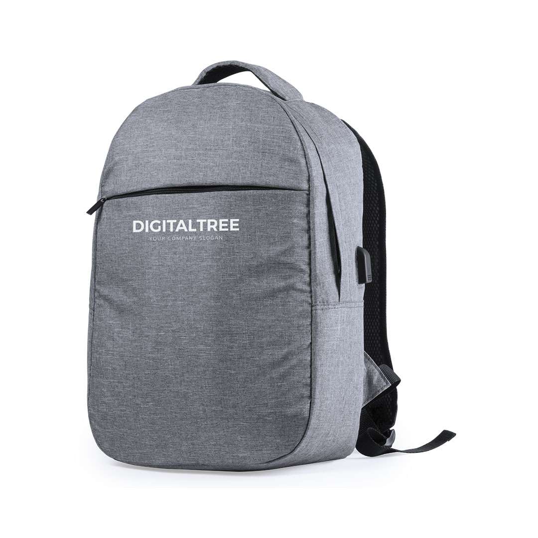 Zaino di sicurezza, design urbano in resistente poliestere 300D. Tasca interna con protezione di sicurezza RFID (Radio Frequency Identification) che mantiene al sicuro i dati delle carte e altri dispositivi. Scomparto principale con elegante patta con zip. Con connessione USB - powerbank non incluso - e tasca interna imbottita per laptop fino a 15". Schienali e spallacci imbottiti.