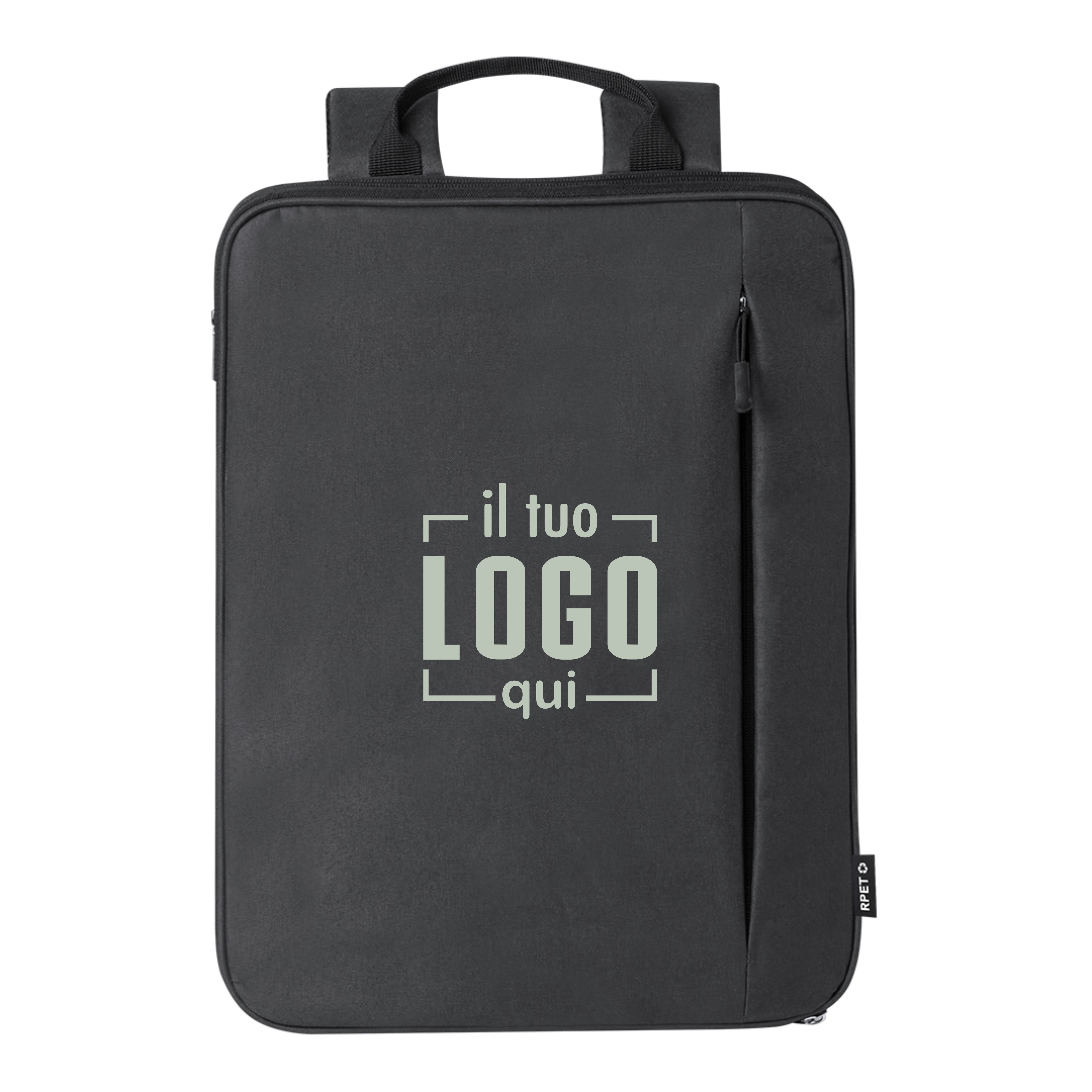Zaino estensibile realizzato in resistente 600D RPET. Dotato di chiusura a zip a doppio cursore, con la possibilità di espanderne la capacità. L'interno presenta scomparti imbottiti progettati per tablet fino a 10" e laptop fino a 15". Gli spallacci sono imbottiti, regolabili e rimovibili e possono essere riposti nella tasca posteriore. Lo zaino include una cinghia per il fissaggio alle valigie e una maniglia superiore per un facile trasporto a mano. Marchio RPET su etichetta. Presentato in un sacchetto individuale riciclato. Il materiale RPET è realizzato con plastica riciclata per incoraggiare il riutilizzo dei rifiuti plastici e contribuire alla sostenibilità del pianeta