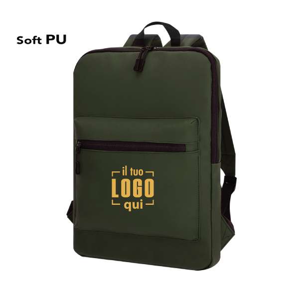 Zaino realizzato in morbido PU, ideale per viaggi e uso quotidiano. Con scomparto imbottito per laptop fino a 15", tasca frontale, e cinghie imbottite per un comfort duraturo. Compatibile con trolley grazie alla cinghia di trasporto.